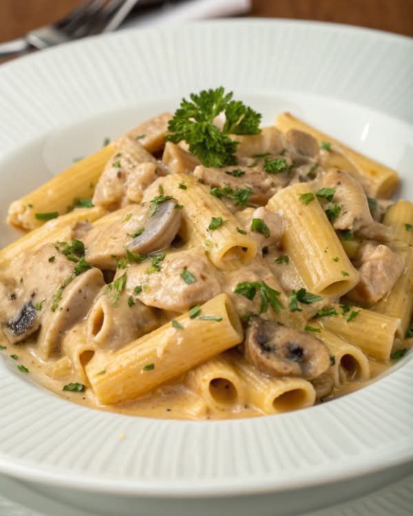 Golden tubes of Sedani Rigati coated in a silky, creamy sauce, combined with the natural sweetness of mushrooms and the tender bite of chicken—sure to impress even the most discerning diners.