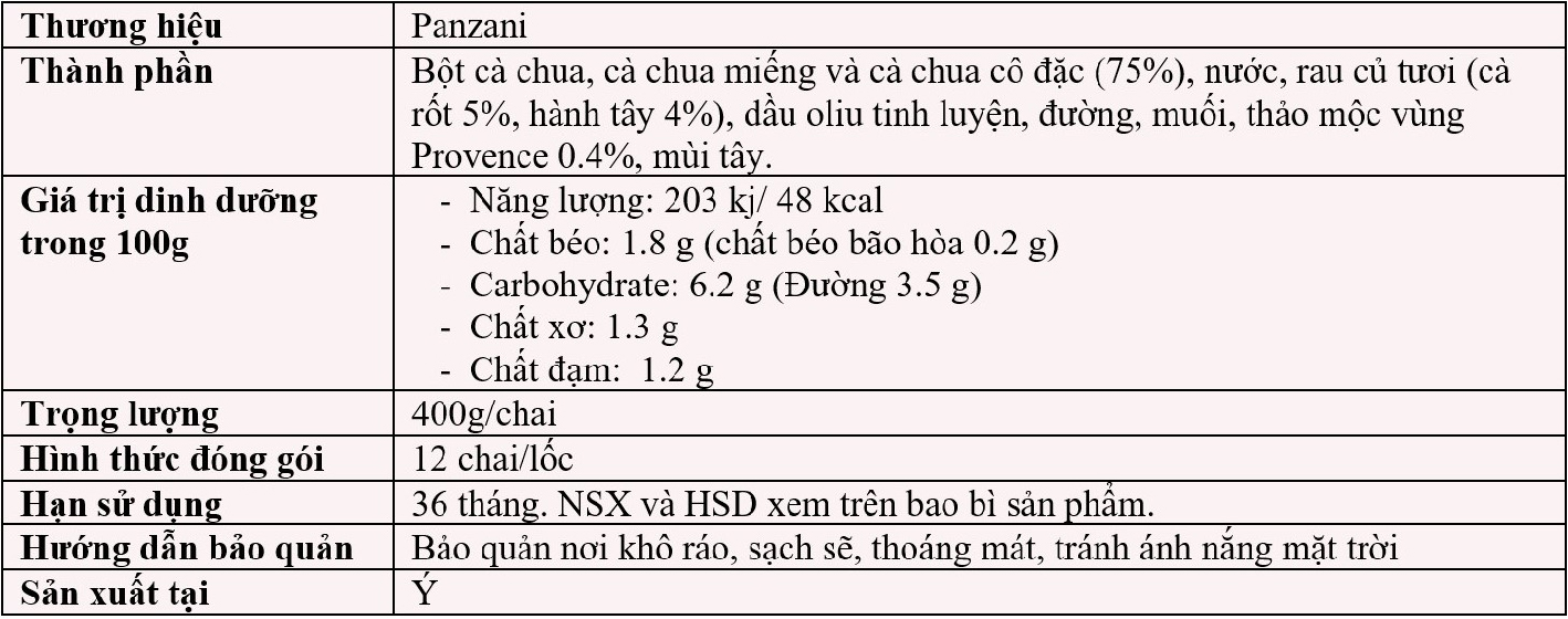 Cà chua chín mọng kết hợp với hương thơm của thảo mộc, mang đến vị ngon khó cưỡng, ôm trọn vào từng nguyên liệu khi kết hợp cùng nhau. Sốt Napoletana Panzani không chỉ ngon miệng khi ăn nóng mà còn giữ được vị ngon ngay cả khi để nguội. Nước sốt Pasta là một phần không thể thiếu của nền ẩm thực Ý, từngvùng khác nhau sẽ có một phiên bản riêng, nhưng suy cho cùng, chúng ta luôn chắc chắn là chúng đang góp phần làm tăng thêm hương vị và kết cấu hấp dẫn cho món ăn